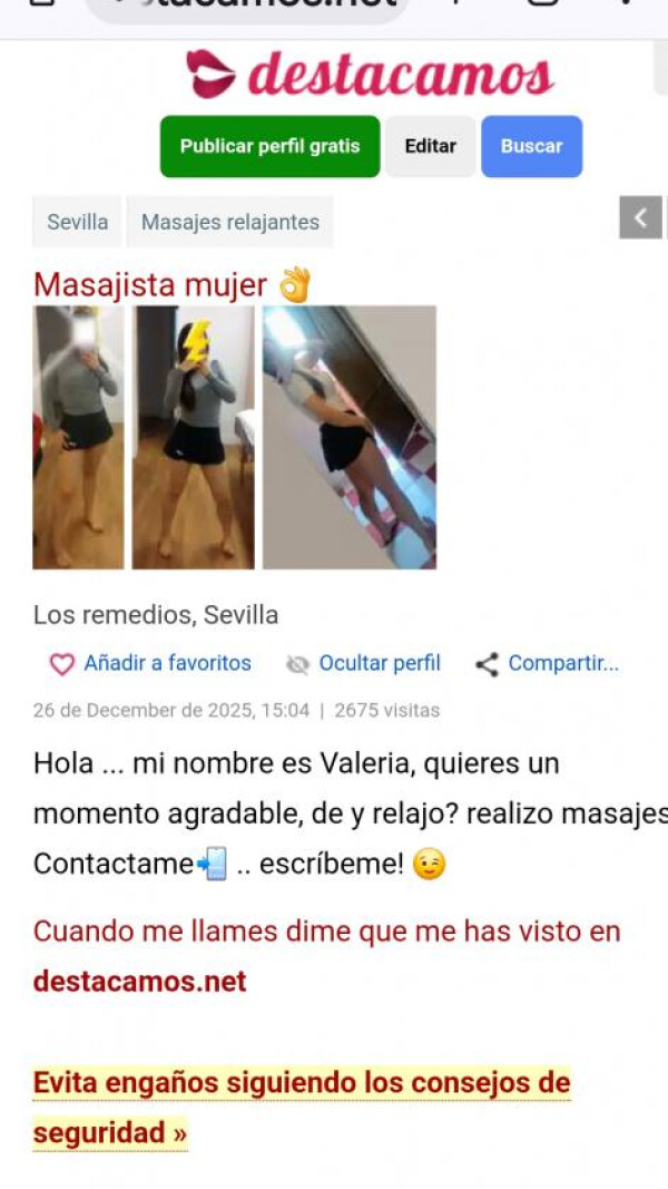 No tenemos relación directa con los usuarios ni verificamos personalmente su identidad. PrensaSex modera el contenido que se publica, pero no intermedia en las comunicaciones ni se responsabiliza de lo que los usuarios hagan fuera de la plataforma. No envíe dinero por adelantado a personas que no conoce. Actúe siempre con precaución y verifique la información antes de realizar cualquier acción. Ver menos