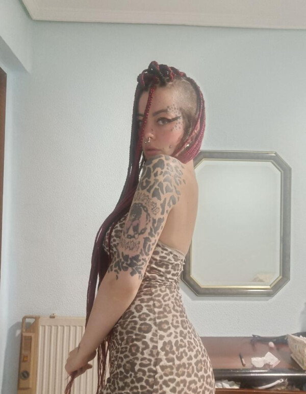 Muy tatuada, con muchos pendientes y con las cosas bien claras. Dispuesta a y con un buen piso y buena higiene