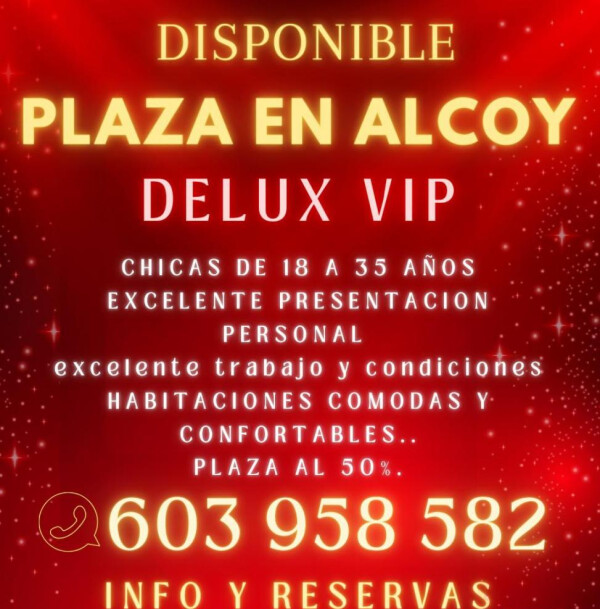 ¿Tienes entre 20 y 35 años y buscas un lugar , cómodo y con ambiente selecto para trabajar con tranquilidad? En Alcoy (Alicante) tenemos plazas disponibles en un espacio pensado para chicas elegantes, con estilo y ganas de prosperar. Habitaciones totalmente equipadas, privacidad total, ambiente tranquilo y la mejor ubicación para atender a tus cómo...
