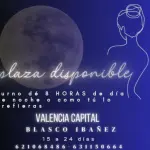 Hola chicas tengo un hueco en VALENCIA con todas las comodidades para ti, tienes todo cerca supermercados. Locutorios, farmacia, hay trabajo escríbe o lláma