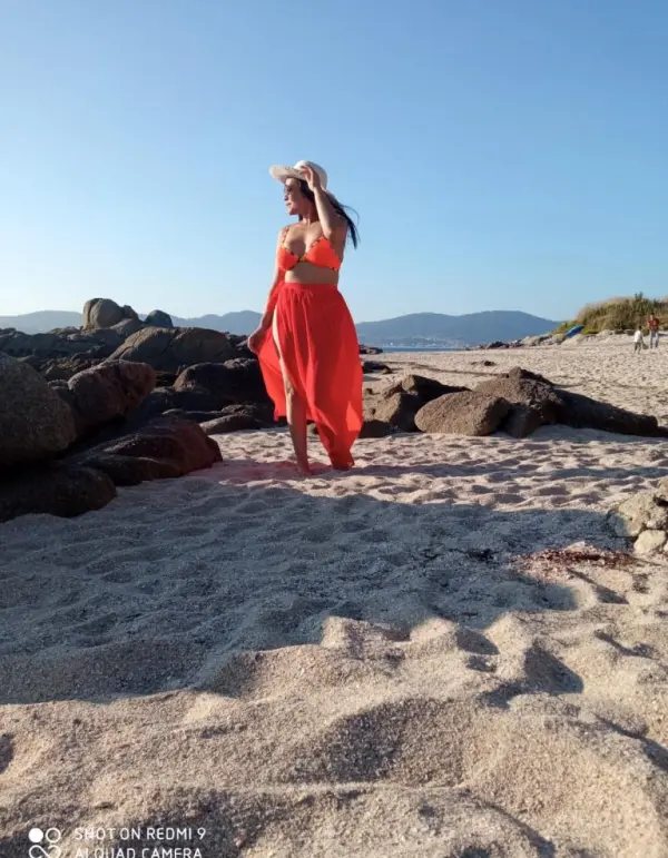 Soy de pelo negro y lacio, que cae suave y enmarca mi rostro, con ojos verdes que brillan cuando sonrío. Tengo una figura delgada pero bien caderona, femenina y segura, que refleja mi esencia. Soy una mezcla de dulzura y carácter, con una belleza que se nota más cuando soy yo misma.”