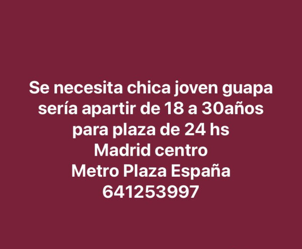 Buscamos chicas para plaza en la zona del Santiago Bernabéu, chicas jóvenes, guapas que quieran trabajar PLAZA DISPONIBLE ZONA BERNABÉU