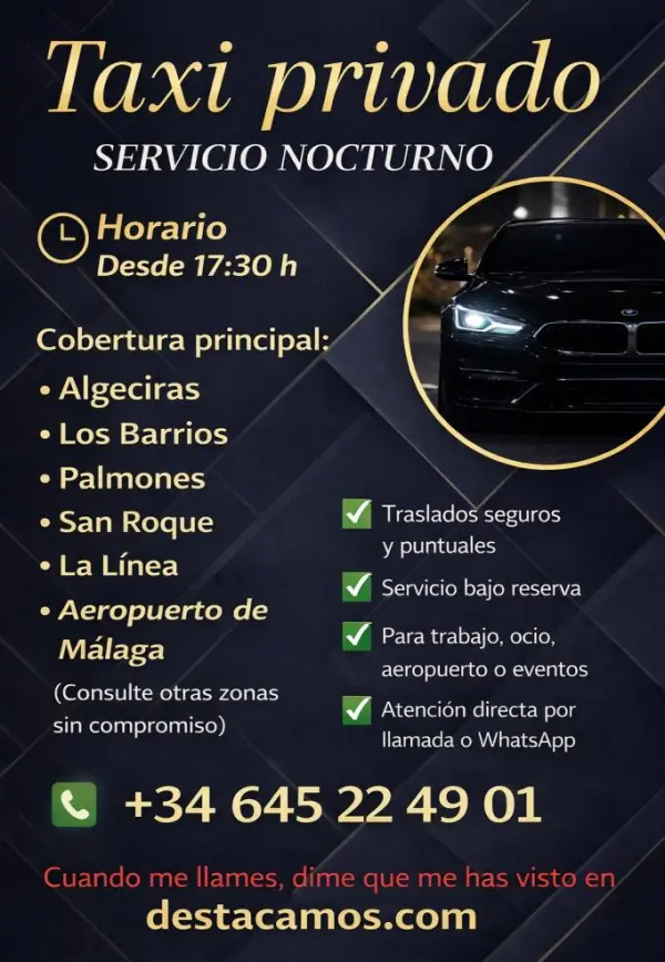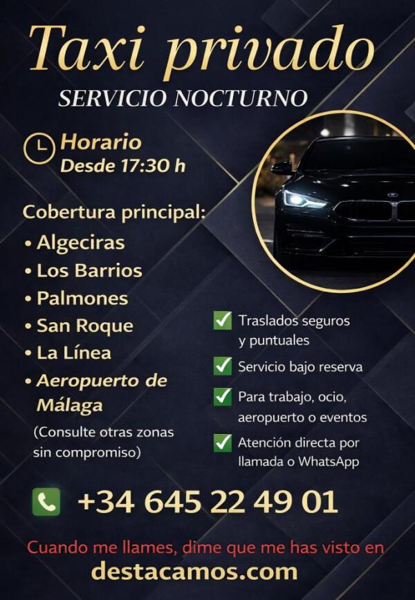 Taxi privado disponible en horario de tarde y noche